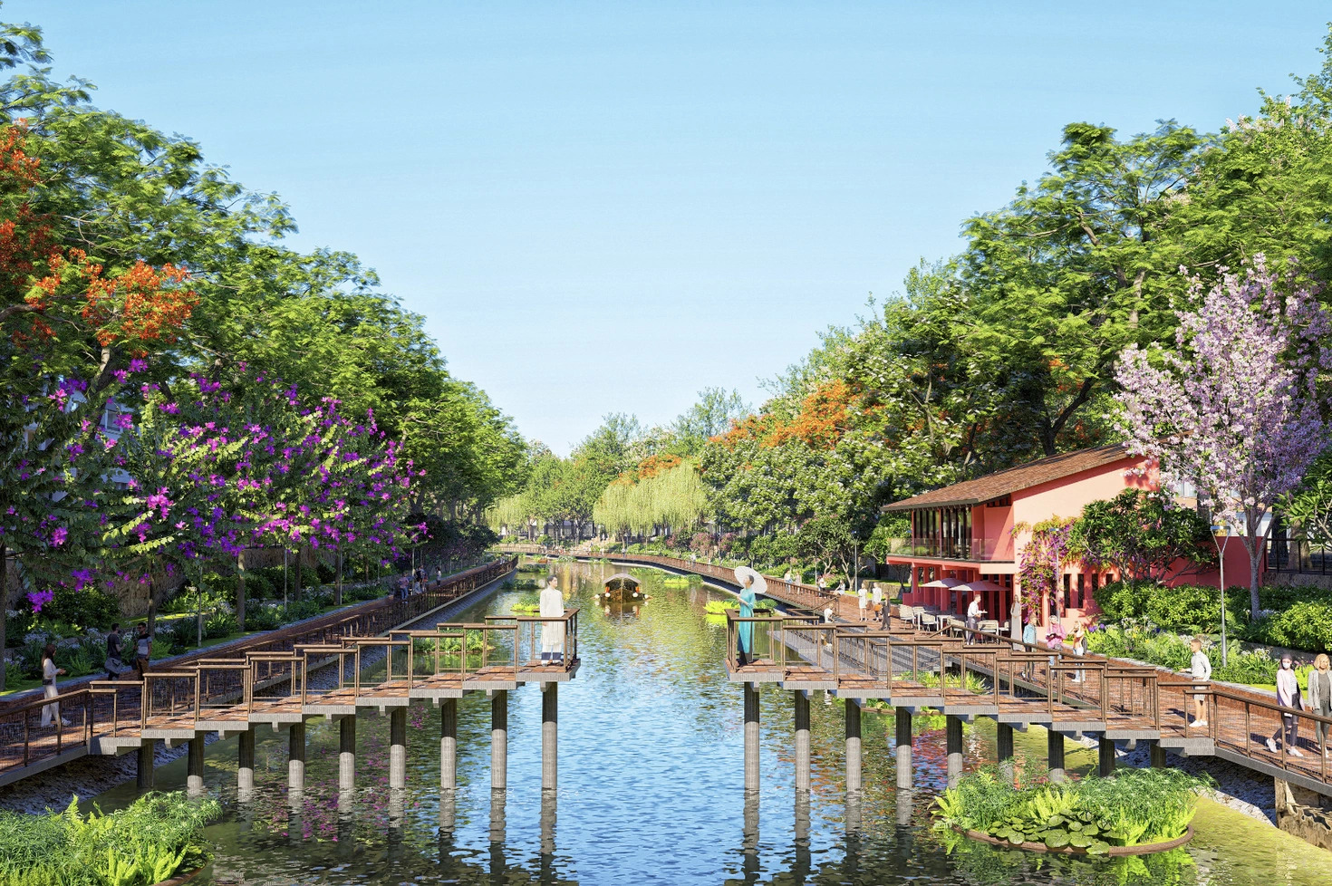 According to the proposal, the project will feature comprehensive infrastructure upgrades including roads, sidewalks, plazas, retaining walls, riverside walkways, stepped seating areas, ramps, curbstones, tree beds, parking areas, sports fields, and playgrounds. A designated pedestrian route will stretch the entire length of the river.